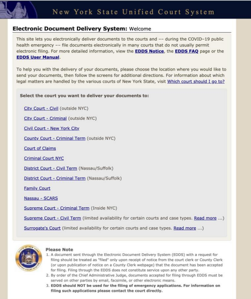 To enhance the EDDS NYS Unified Court System’s transition to Virtual Court Operations in response to the COVID-19 public health crisis, NYSCEF has introduced EDDS (the Electronic Document Delivery System).