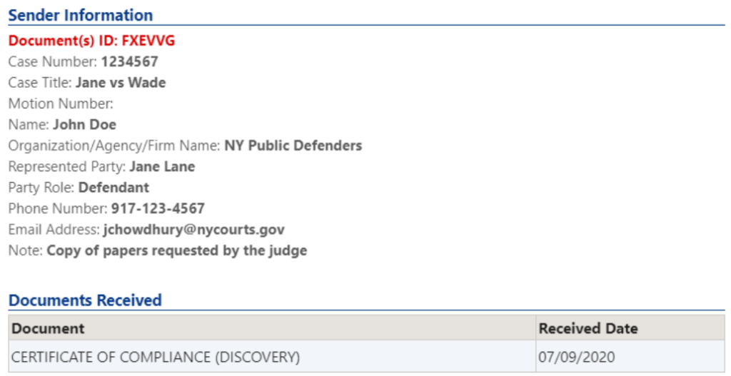 After submitting a document, you will receive a confirmation email with a unique document identifier. You can reference this identifier when following up with the court.