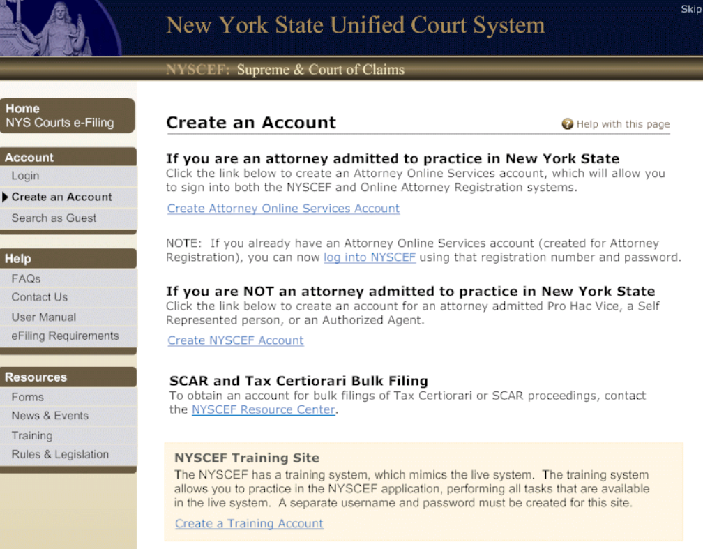 (See Create NYSCEF Account page (Screen C) and follow the instructions on page 13.) - SCAR Cases or Tax Certiorari Cases