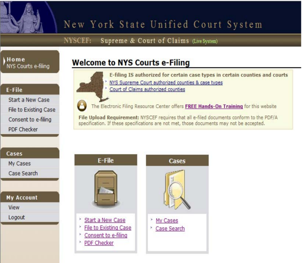 Step 9: NYSCEF Home Page