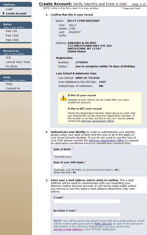 Creating a NYSCEF Account (Screen C)